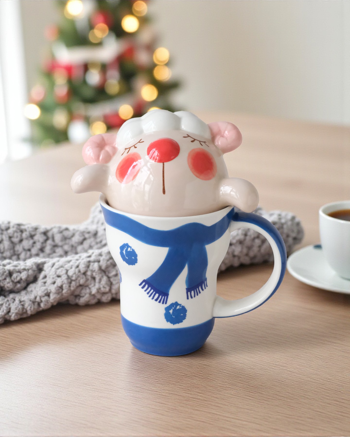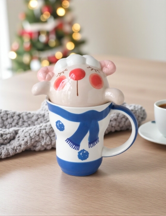 Ly Nắp Cừu Xanh Quàng Khăn Xanh Dương Trắng