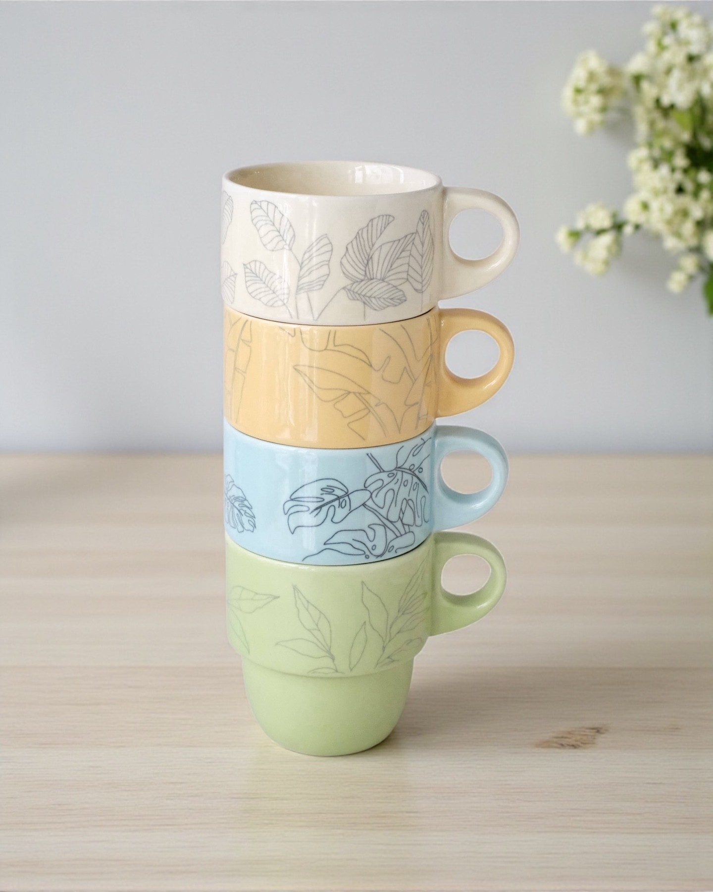 Pack 4 Ly Form Chồng Trơn Sketch Lá