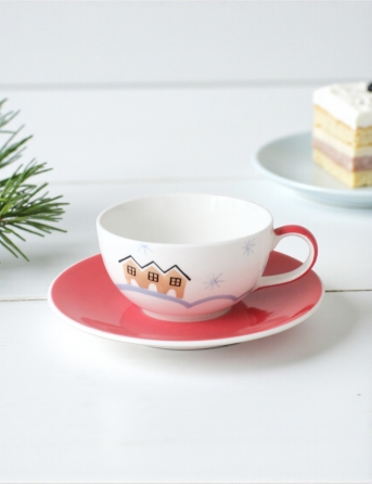 Tách Xmas 3 Ngôi Nhà Dĩa Đỏ