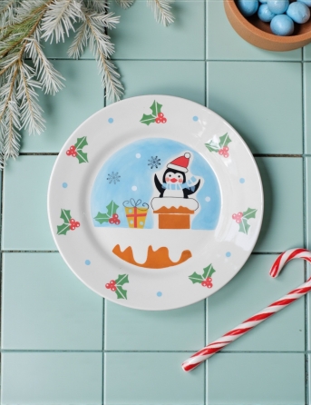 Dĩa Tròn Xmas Cánh Cụt Chui Ống Khói Lớn