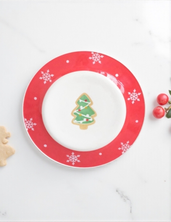 Dĩa Xmas Tròn Bánh Cây Thông Viền Đỏ